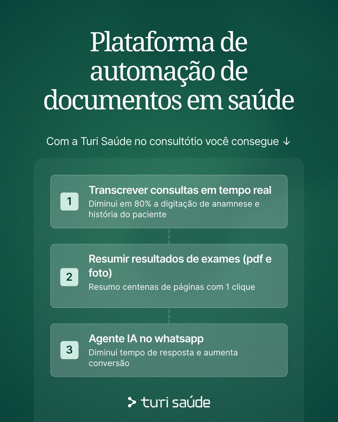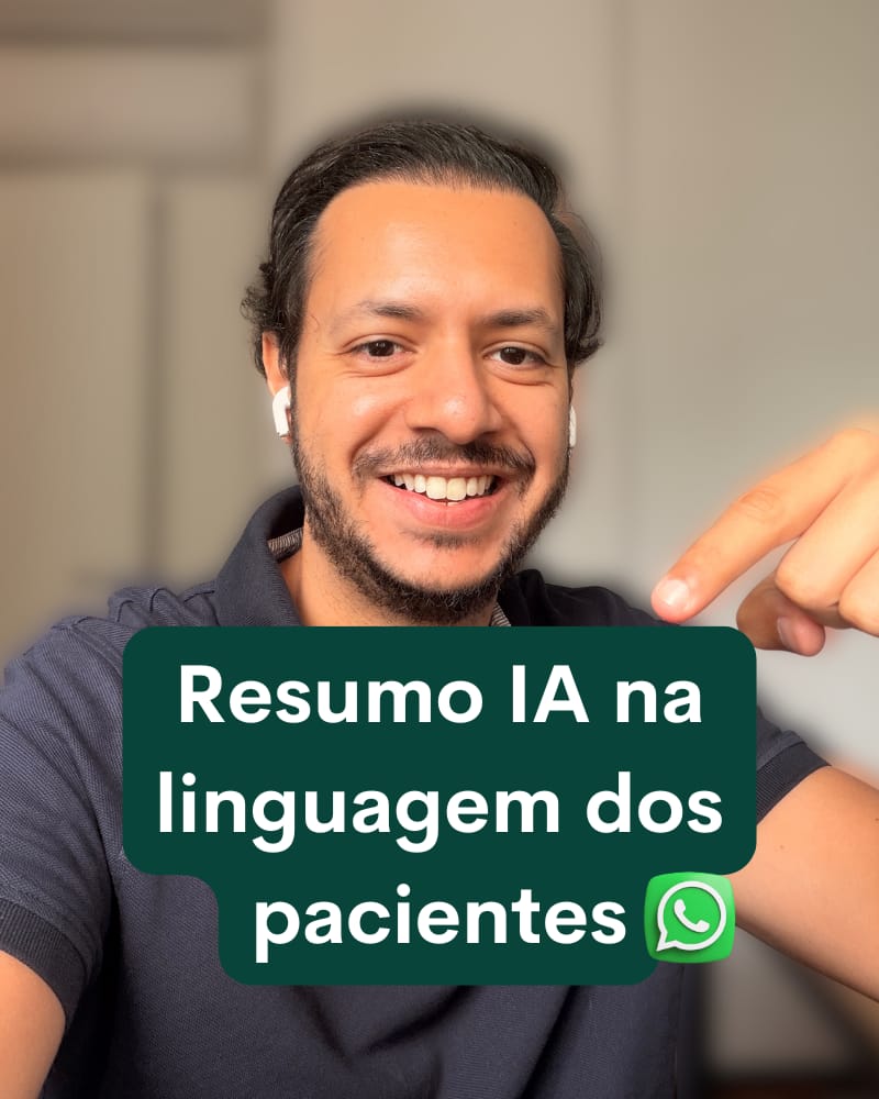 Incluindo: i. ferramenta de transcrição de consultas, ii. IA para resumo de exames (pdf e fotos), iii. agente de whatsapp para agendamento de consultas.